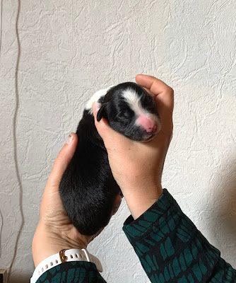 Huhuu. Poika joka huhuili pää edellä maailmaan vaikka loppupää koirasta oli vielä syntymättä. Isoin pennuista ja nälkäinen. Nenässä jotain samaa kuin isä Ronilla <3